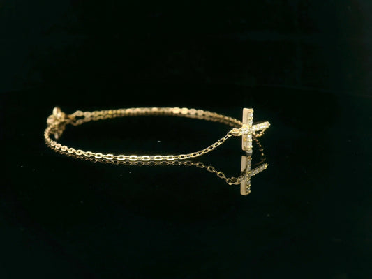 18K Yellow Gold Diamond Cross Bracelet – 0.14ct Dainty Religious Jewelry