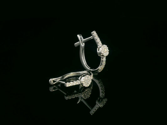 18K Gold Diamond Circle Earrings – 0.33 Carat Round Diamond Floral Studs