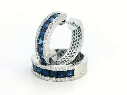 18K Gold Square-cut Sapphire Huggie Hoop Earrings with Diamonds