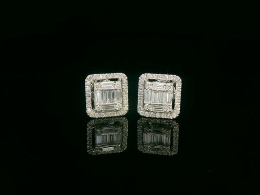 18K Gold Cluster Diamond Earrings – 0.56ct Round & Baguette Cut Studs