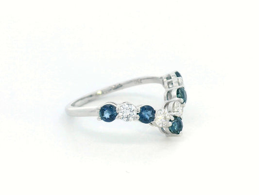 18K Gold Chevron Ring – V-Shape Design with Diamonds & Blue Sapphires