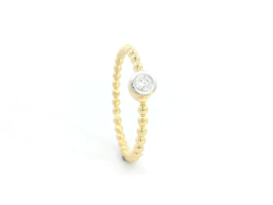 Minimalist Beaded Band Diamond Ring with Bezel-Set Diamond in 18K Yellow Gold