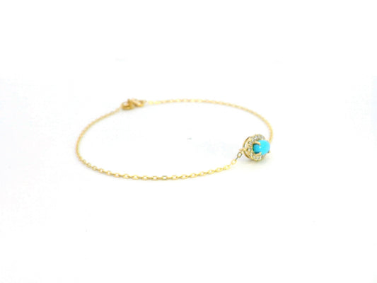 18K Gold Oval Turquoise and Diamond Halo Bracelet