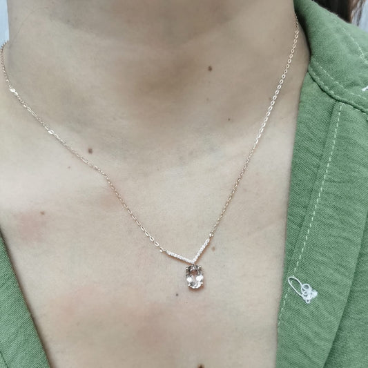 Elegant 18K Gold Oval Morganite Necklace – 1.12 Ct Morganite & 0.08 Ct Diamonds