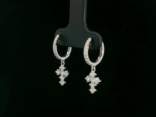 18K Gold Diamond Cross Hoop Earrings – 0.73ct Elegant Drop Earrings for Women & Men