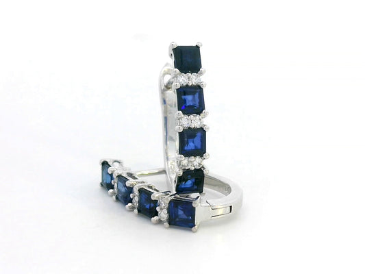 18K Gold Square-cut Sapphire and Diamond Oval Hoop Earrings – September Birthstone Jewelry,