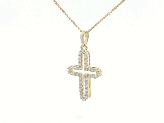 18K Yellow Gold Diamond Cross Pendant – 0.37ct