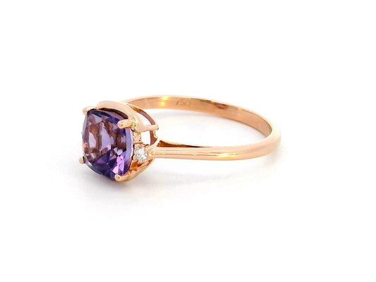 18K Gold Cushion-Cut Amethyst Ring | 1.51 Carat with Diamond Accents
