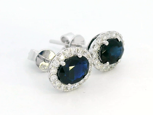 18K Gold Blue Sapphire with Diamond Halo Stud Earrings