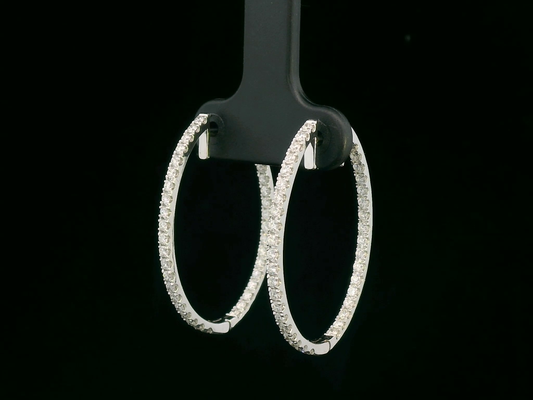18K Gold Diamond Hoop Earrings with 0.97 Carats of Round-Cut Diamonds