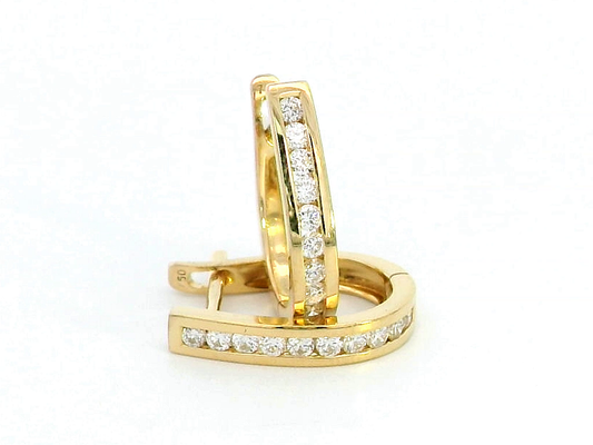 18k Yellow Gold Diamond Hoop Earrings - 0.30 Carat