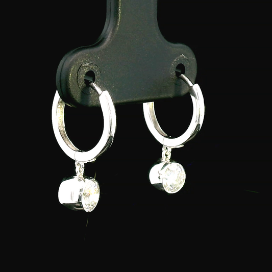 18K Gold Bezel Set Diamond Drop Earrings – 0.57 Carat Round Cut Dangle Hoops