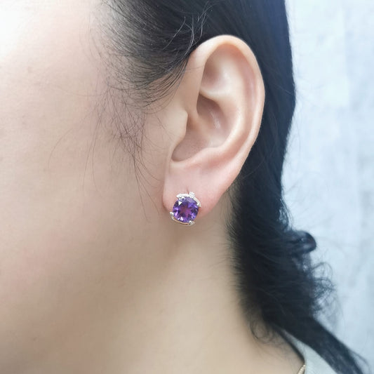 18K Gold Cushion-Cut Amethyst Earrings | 3.99 Carat with Diamond Accents