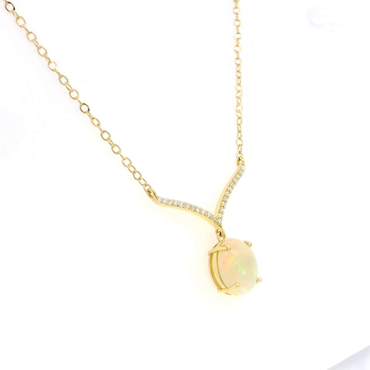 18K Gold Opal Necklace | 1.30 Carat Oval Opal with Diamond Accents (0.10 Carat)