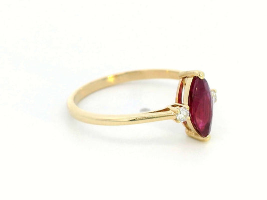 18K Yellow Gold Marquise Ruby Ring with Diamond Accents – 0.97ct Ruby
