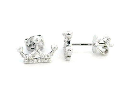 18K Gold Princess Crown Diamond Stud Earrings – 0.11 Carat, Elegant and Cute Design
