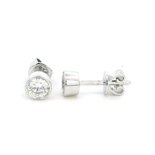 18K Gold Diamond Stud Earrings in Bezel Setting | 0.56 Carat Total Diamond Weight