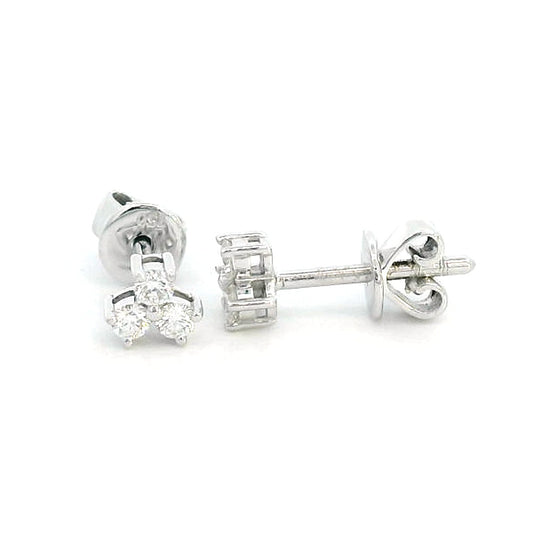 18K Gold Three Diamond Stud Earrings – 0.20 Carats of Round-Cut Diamonds