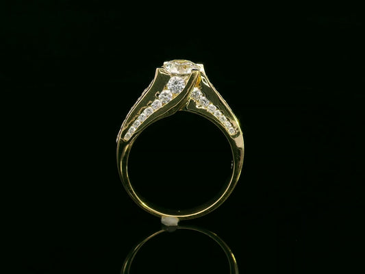 18K Yellow Gold Round-Cut Diamond Engagement Ring – 1.00ct Center + 0.84ct Side Diamonds