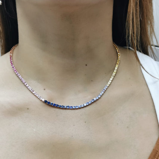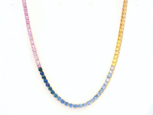 18K Gold Multi-Color Sapphire Necklace | Rainbow Gradient Gemstones