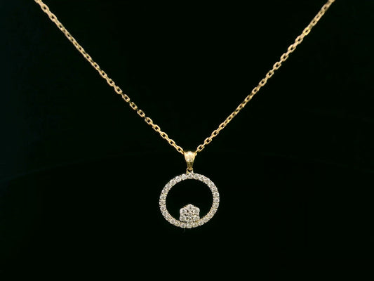 18K Gold Diamond Circle Floral Accent Design Pendant | Elegant Minimalist Necklace Charm