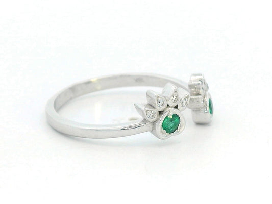 18K Gold Paw Ring with Emerald & Diamond Accents – Open Band for Animal Lovers