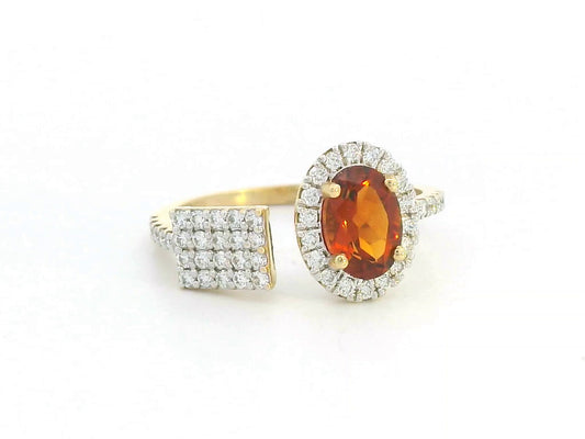 18K Gold Oval Citrine With Diamond Halo. Open Space Diamond Ring
