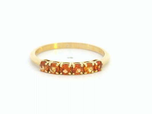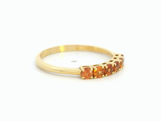 18K Yellow Gold Half Eternity Ring with Round Orange Sapphires – Birthstone & Stacking Ring