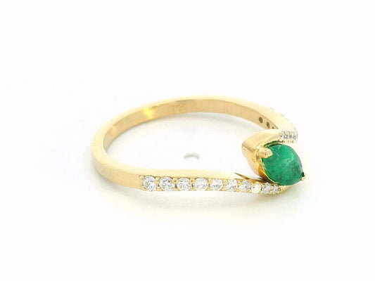 18K Yellow Gold Bypass Ring with Marquise-Cut Emerald and Diamond Accents