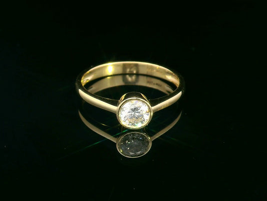 18K Yellow Gold Bezel Set Solitaire Ring with 0.51 Carat Round Diamond