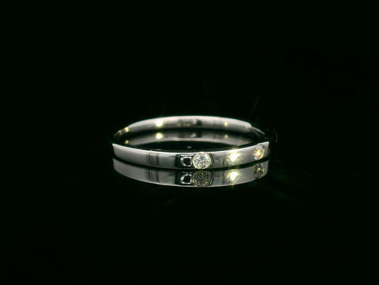 18K Gold Flush Set Diamond Band – Minimalist 3-Stone Ring