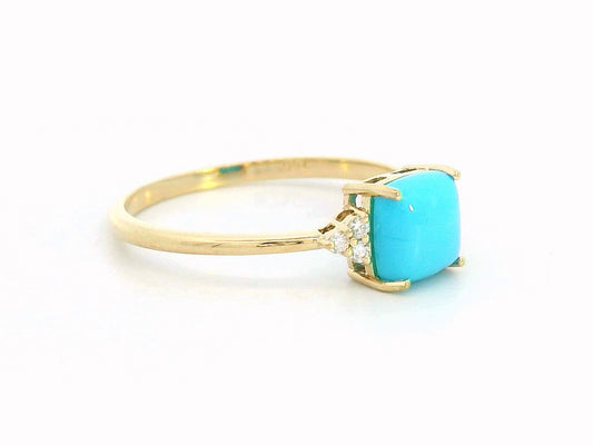 18K Yellow Gold Cushion-Cut Turquoise Ring with Diamonds