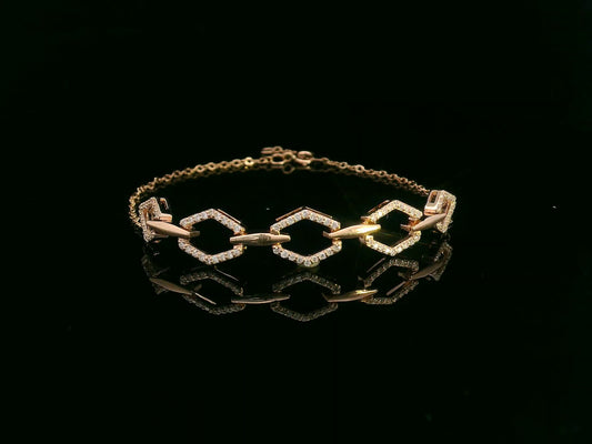 18K Gold Hexagon Link Diamond Bracelet – Modern Chain Design with 0.39 Carat Diamonds
