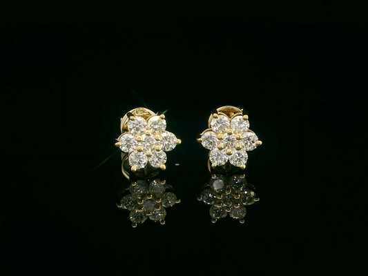 18K Yellow Gold Floral Cluster Diamond Earrings | 0.62 Carat Round Cut Studs