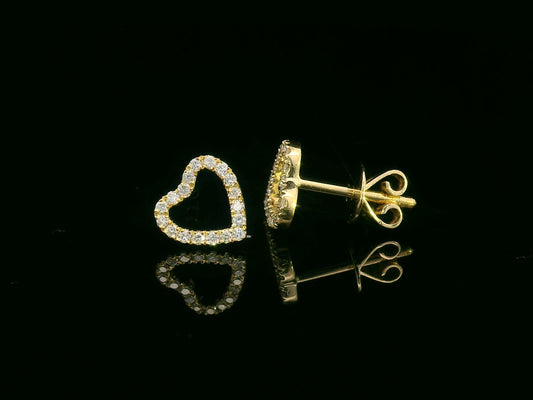 18K Yellow Gold Heart Diamond Stud Earrings | 0.17 Carat | Open Heart Design with Screw Backs