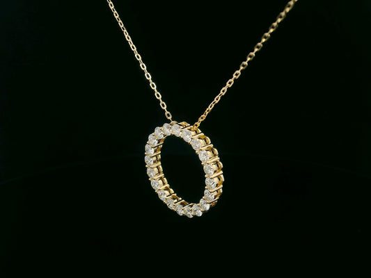 18K Yellow Gold Diamond Circle Pendant Necklace | 1.74 Carat Round Diamonds