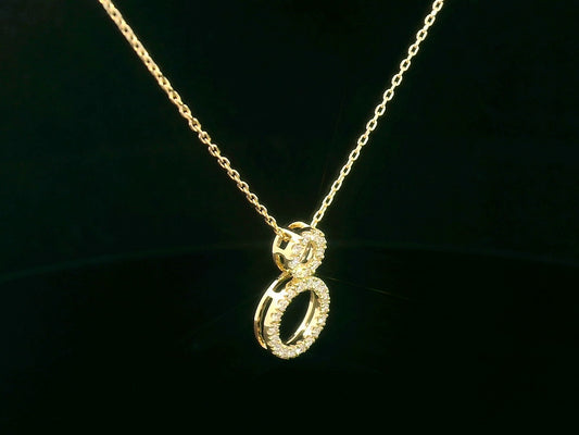 18K Gold Double Circle Diamond Pendant Necklace | 0.18 Carat | Minimalist Elegant Design