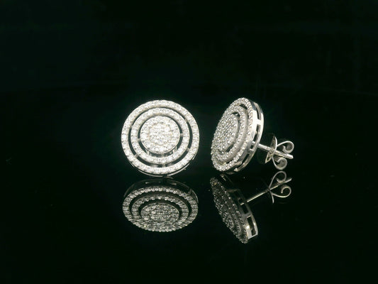 18K White Gold Diamond Cluster Circle Stud Earrings – 0.59 Ct