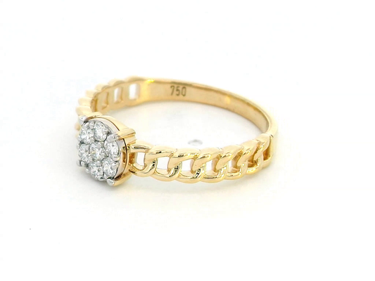 18K Yellow Gold Ring with 0.24ct Diamond Cluster and Cuban Link Chain Band – Women's Gift Box Included