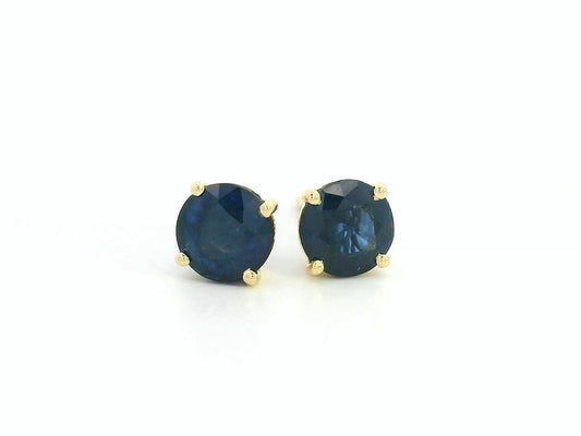 18K Yellow Gold Round-cut Blue Sapphire Solitaire Stud Earrings