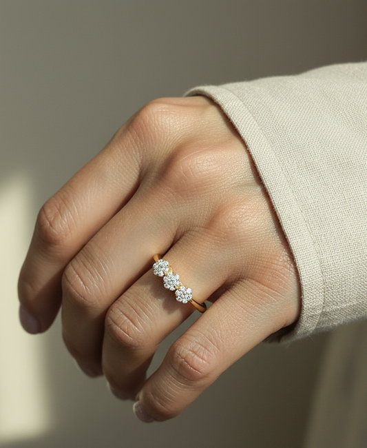 Diamond Cluster Trio Ring in 18K Yellow Gold