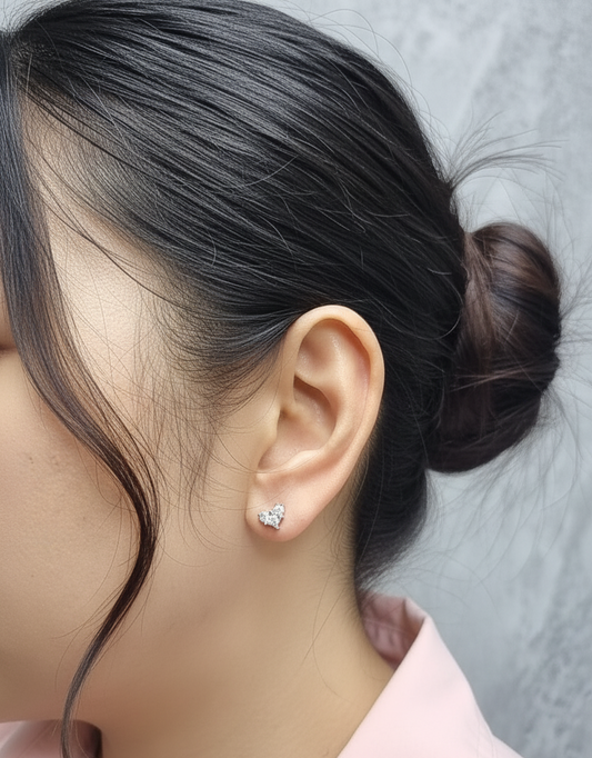 Diamond Floral Stud Earrings in 18K Gold | Heart-Shaped Petals | 0.46 Carat Total