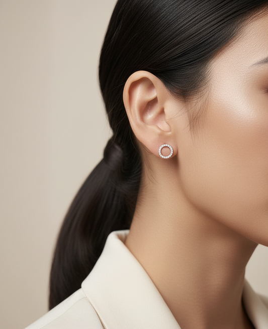 Diamond Halo Circle Stud Earrings in 18K White Gold