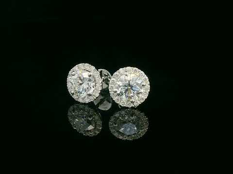 Diamond Halo Stud Earrings in 18K White Gold – 2.33 Carat Total