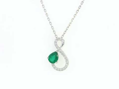 Emerald & Diamond Infinity Pendant in 18K White Gold
