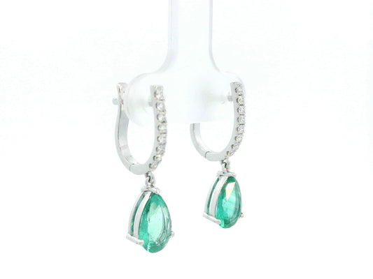 Emerald & Diamond Drop Earrings in 18K White Gold
