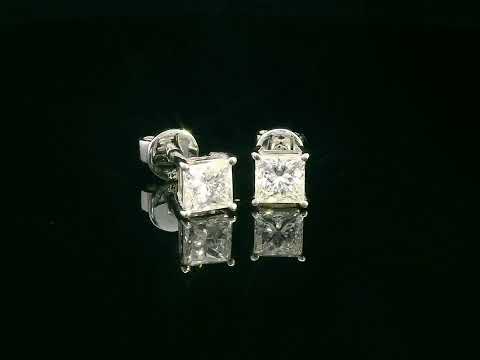 Solitaire Princess-Cut Diamond Stud Earrings in 18K White Gold | GIA Certified | 1.01 Carat Total