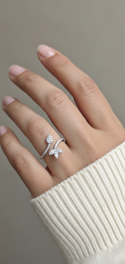 Diamond Leaf Crossover Ring in 18K White Gold