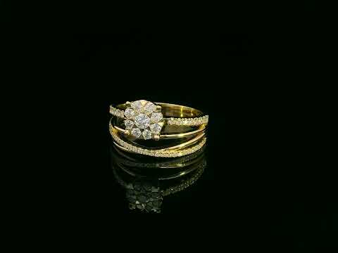 Diamond Cluster Bridal Ring in 18K Yellow Gold – 0.63 Carat Total