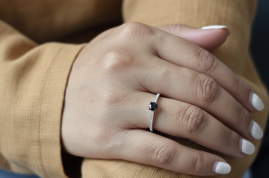 Black Diamond & Diamond Solitaire Ring in 18K White Gold